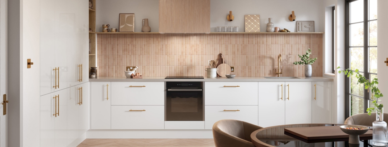 The easiest way to incorporate it is through cabinet pulls or knobs, which make a huge difference to the overall look. At Hot Doors, we offer a wide range of door handles and matching taps to help you tie the entire design together.